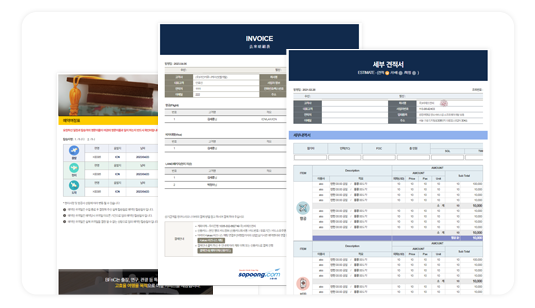 자사만의 업무양식 자동 생성(업무양식 : 인보이스, 견적서, 항공일정표, 전자항공권 양식 등)
