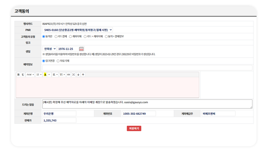 웹페이지 링크를 통한 전자 동의 서비스 (개인정보동의, 여행계약체결, 주요고지사항 전달, 신용카드 사용 동의)
