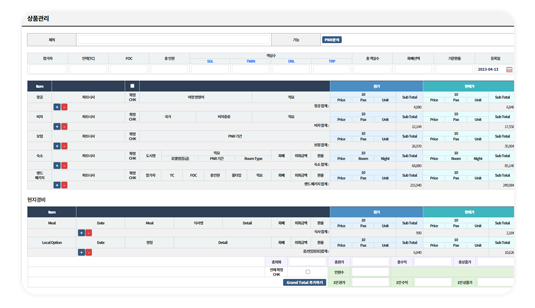 상품공급사(랜드사), 판매사(개별여행, 패키지여행), 대행사(전세계 비자대행, 공항업무) 모든 여행사의 가장 기본적인 업무처리 및 고객대상 제출자료 기능 및 협력업체 자료와 연동되는 기능과 빠르고 정확하게 정보를 수집하고 가공 할 수 있는 디지털 환경에 맞추어 사업 경쟁력을 갖기 위하여 필수로 사용해야 할 비즈니스 도구입니다.