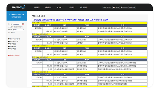다양한 고객자료의 전달 프로세스(시스템안에서 이메일 발송가능, 업무양식[인보이스, 견적서, 항공일정표, 전자항공권 등]